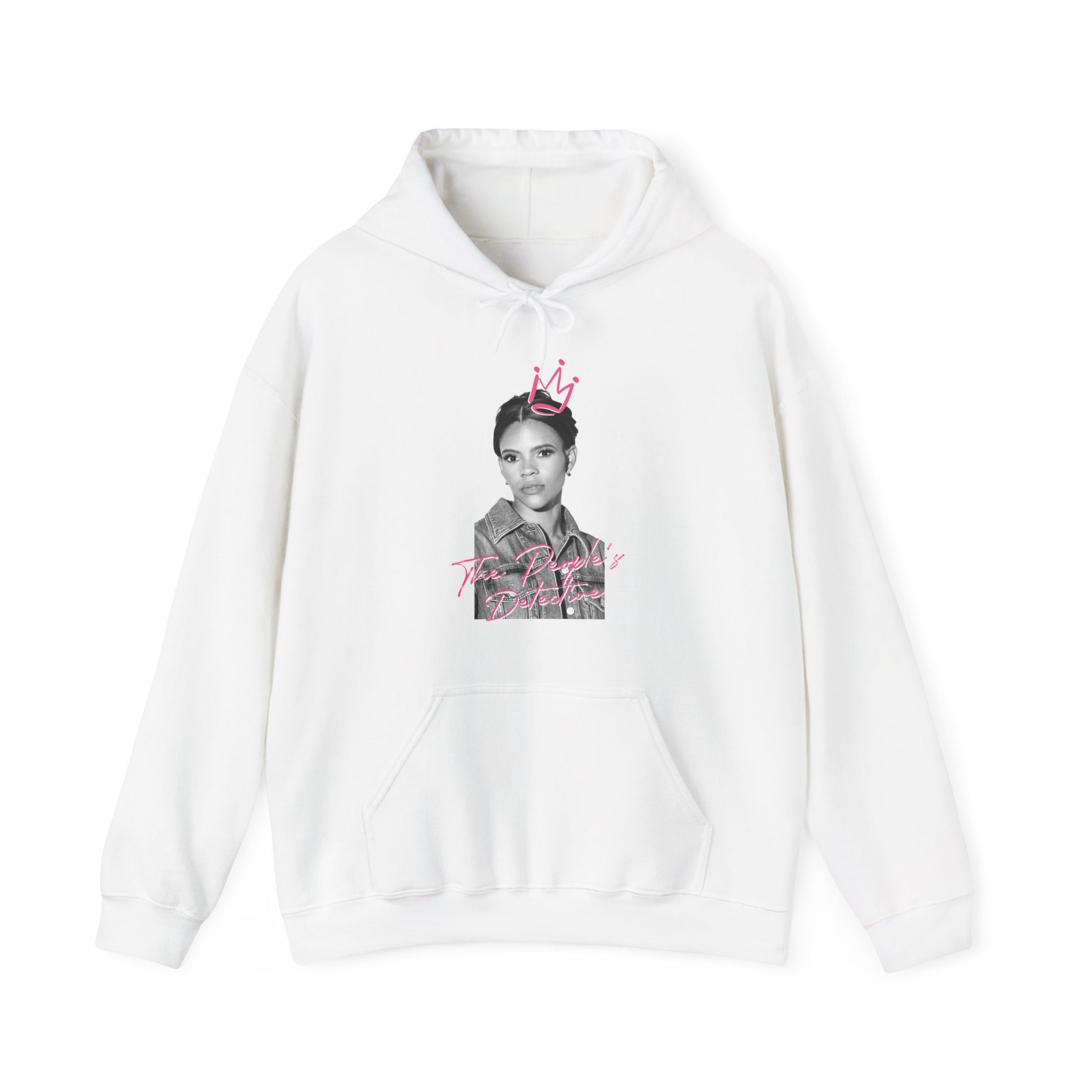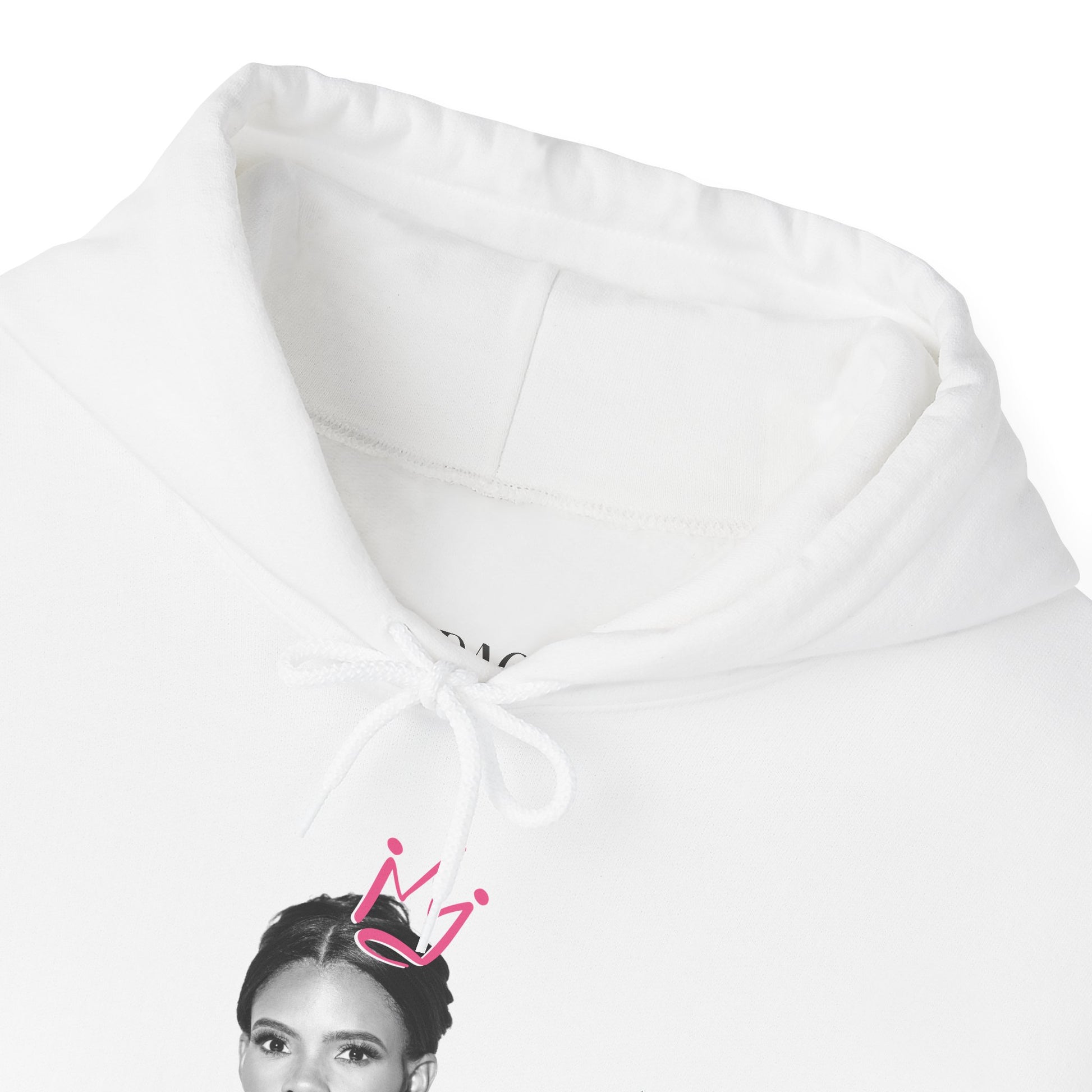 This soft, mid-weight hoodie blends street-ready attitude with subtle, artful detail. The white fleece canvas makes the monochrome portrait and hand-drawn pink crown pop, while the kangaroo pocket and double-lined hood keep things cozy. Wear it on chill mornings, at late-night shows, or while wandering the city — it layers easily, holds warmth without weighing you down, and reads like a quiet statement: nostalgic, confident, and a little rebellious. The tear-away label and smooth fabric mean no itch, so the focus stays on the design and how it fits into your day-to-day rhythm.
