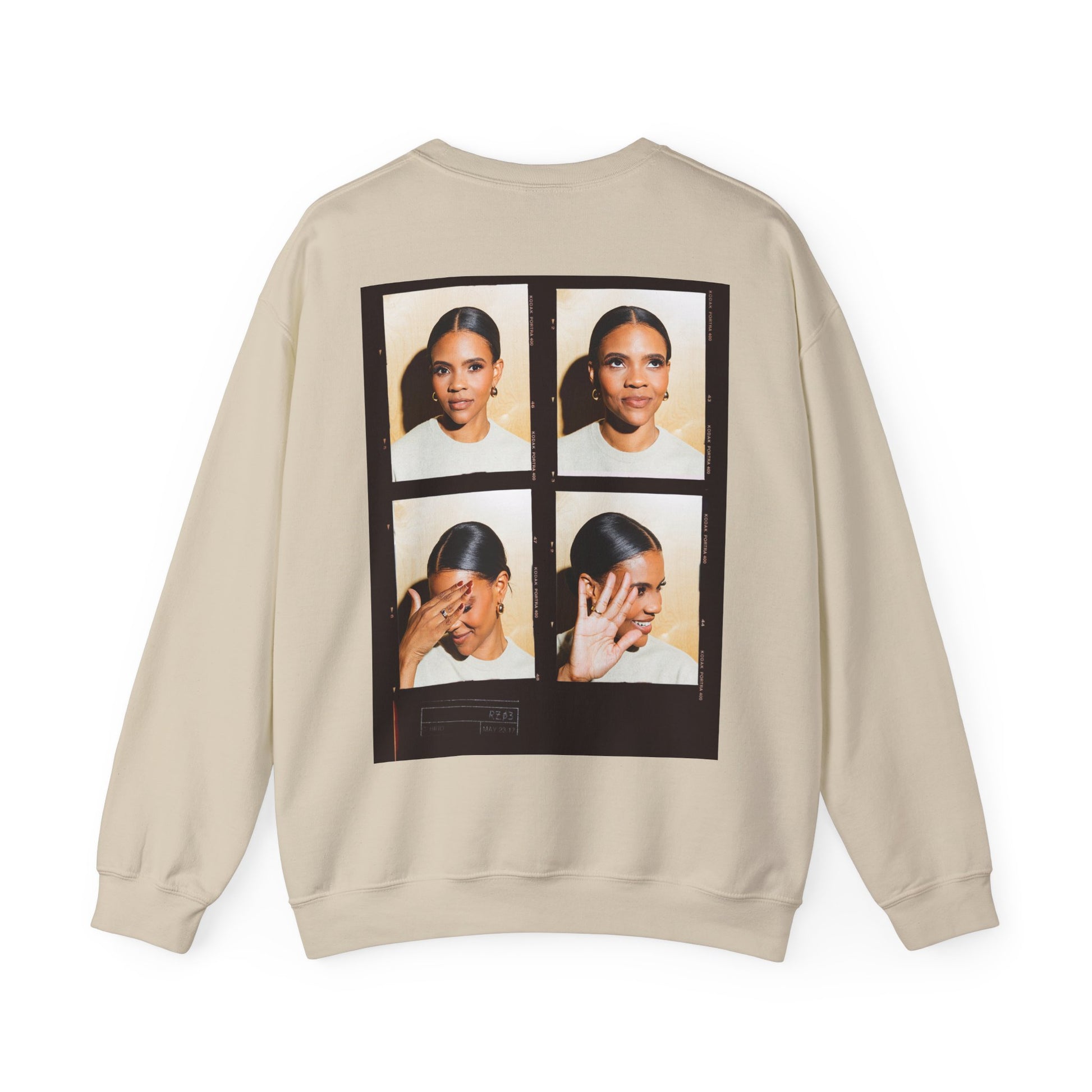 A cozy, thoughtfully made crewneck sweatshirt that reads like a wearable memory. The soft, medium-heavy cotton-poly blend feels broken-in from the first wear, while the clean front keeps the look minimal — a small, delicate name-type embroidery at the chest that whispers rather than shouts. Turn it around and a bold four-frame photo-collage fills the back, giving the piece personality and a cinematic, personal-vintage vibe. Wear it for slow mornings, road trips, or when you want a comforting layer that also tells a story. The neutral shade and classic cut let the images do the talking; the durable stitching and OEKO-TEX-safe dyes mean this sweatshirt will keep its shape and color through seasons of wear.